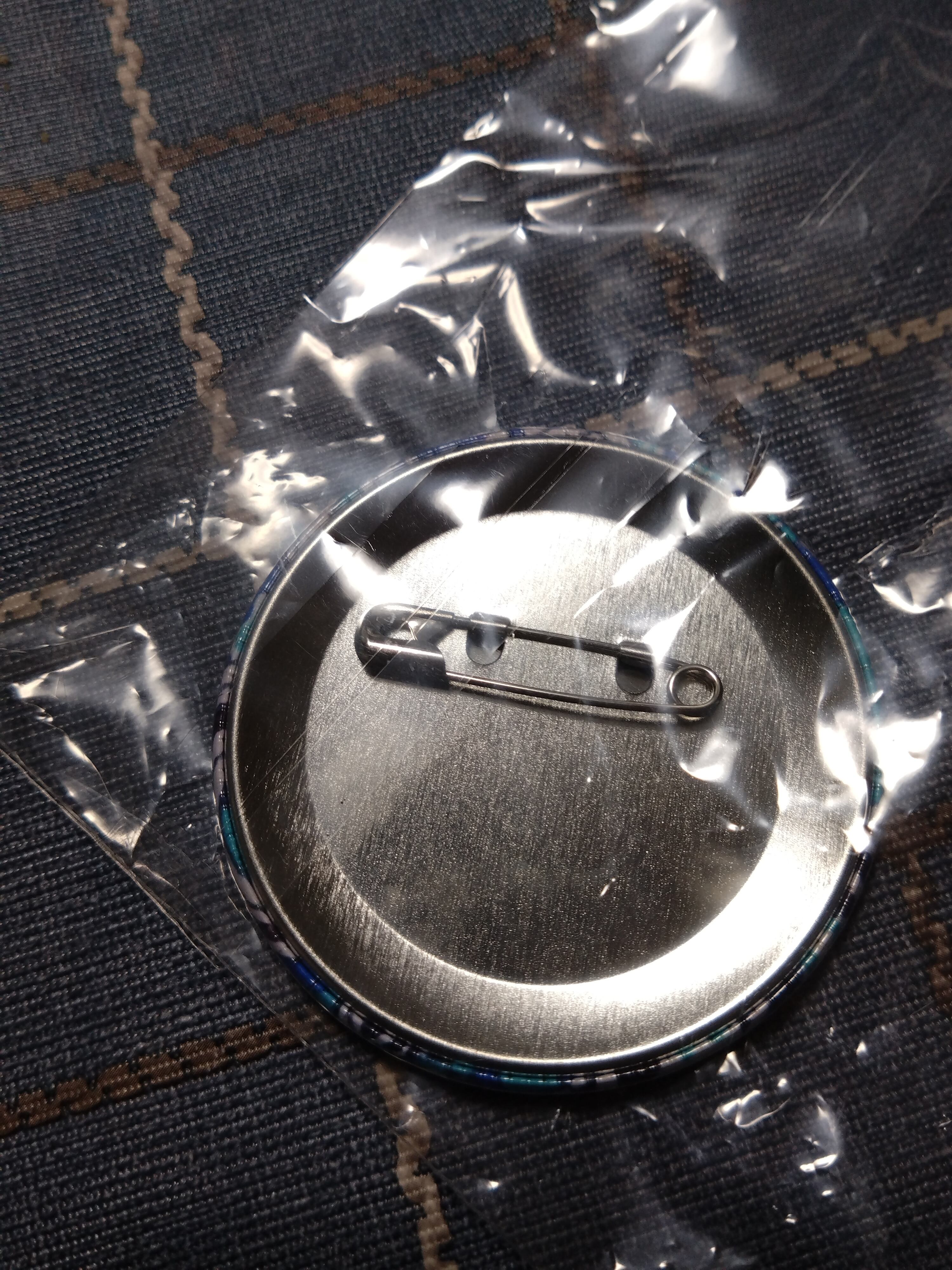 青系の抽象デザインを描いた缶バッジです。